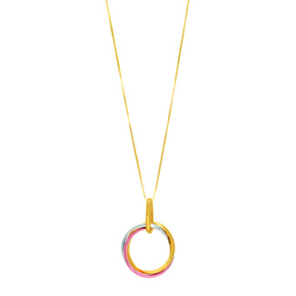 14K Tri-Colorr Gold Interlocking Rings Necklace