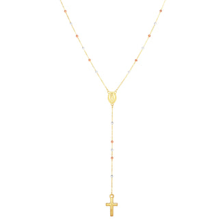 14K Tri-Colorr Gold Rosary Inspired Necklace
