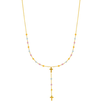14K Gold Drop Cross Rosary Inspired Necklace