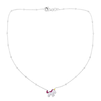 Silver Rainbow CZ Scattered Baguette Short Bar Necklace