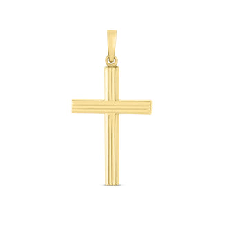 14K Gold Ribbed Cross Pendant