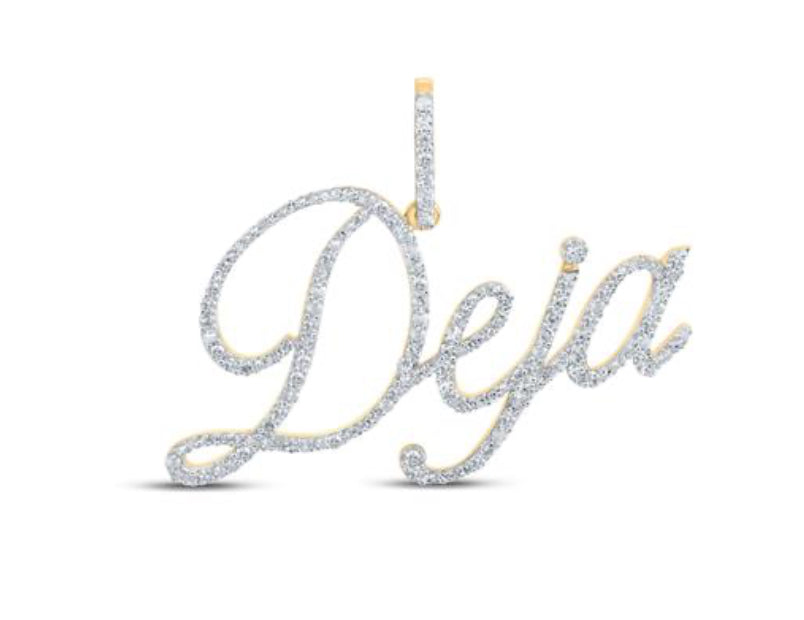 10K YELLOW GOLD ROUND DIAMOND DEJA NAME PENDANT 3/4 CTTW