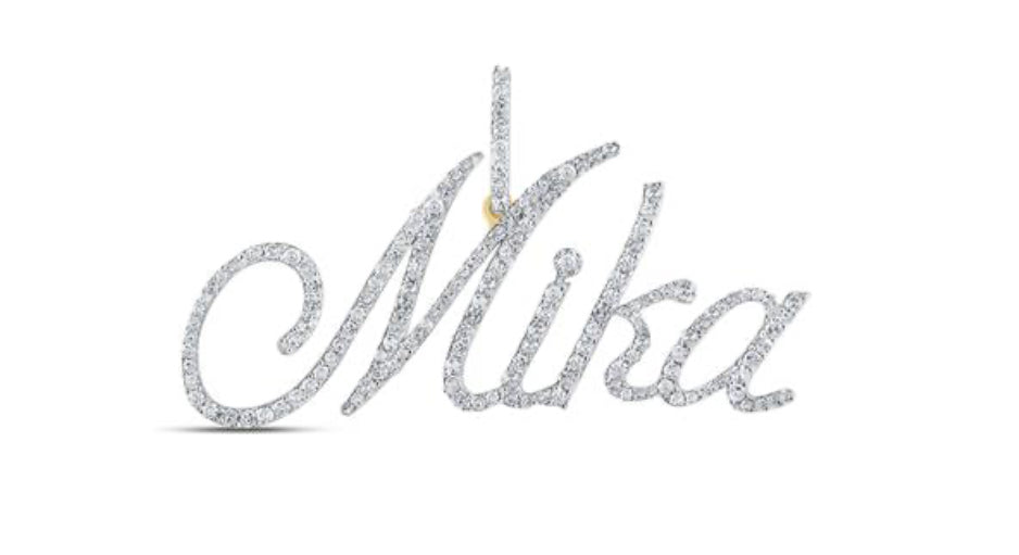 10K YELLOW GOLD ROUND DIAMOND MIKA NAME PENDANT 7/8 CTTW