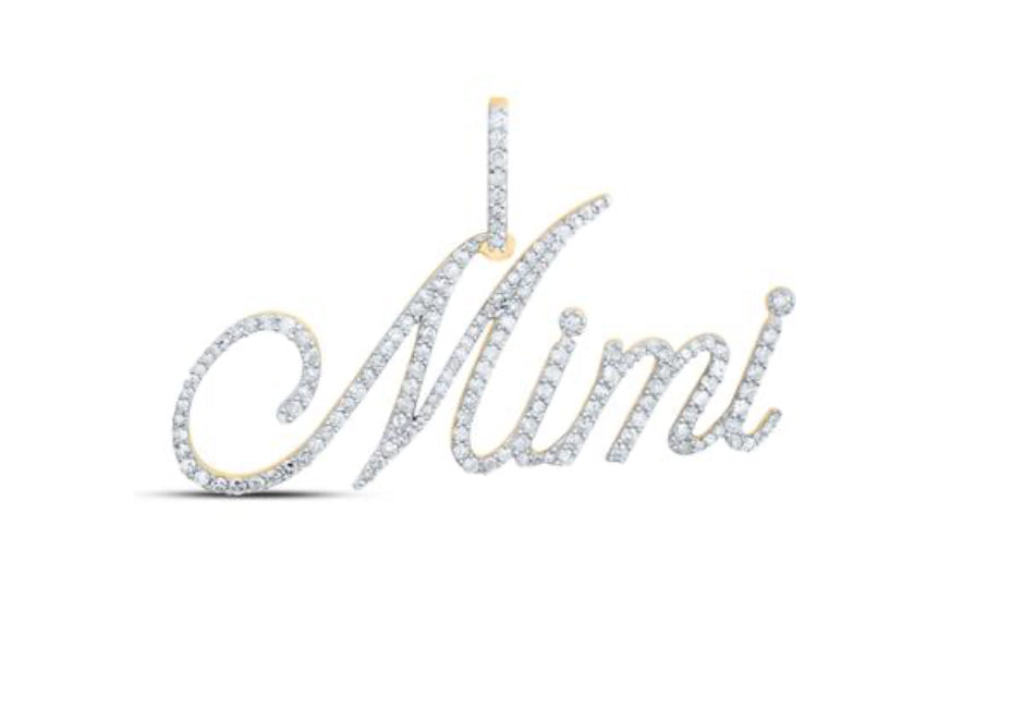 10K YELLOW GOLD ROUND DIAMOND MIMI NAME PENDANT 3/4 CTTW