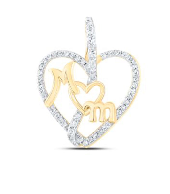 10K YELLOW GOLD ROUND DIAMOND MOM HEART NICOLES DREAM COLLECTION PENDANT 1/8 CTTW