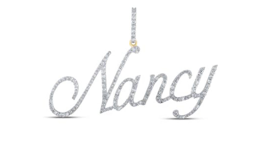 10K YELLOW GOLD ROUND DIAMOND NANCY NAME PENDANT 7/8 CTTW