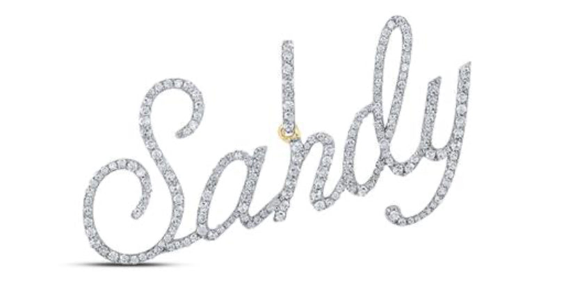 10K YELLOW GOLD ROUND DIAMOND SANDY NAME PENDANT 7/8 CTTW