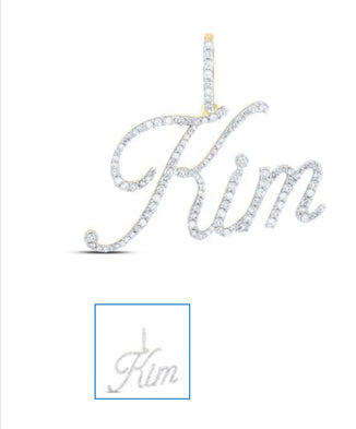 10K YELLOW GOLD ROUND DIAMOND KIM NAME PENDANT 5/8 CTTW