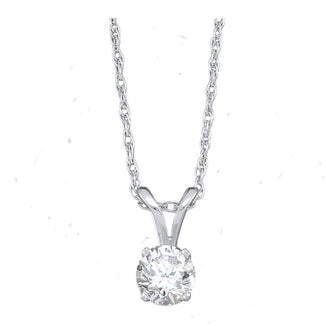 14kt White Gold Womens Round Diamond Solitaire Pendant 1/4 Cttw