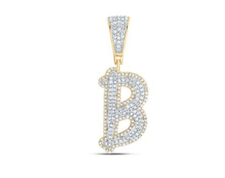 10K TWO-TONE GOLD ROUND DIAMOND B INITIAL LETTER CHARM PENDANT 3/4 CTTW