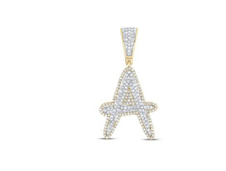 10K TWO-TONE GOLD ROUND DIAMOND A INITIAL LETTER CHARM PENDANT 3/4 CTTW