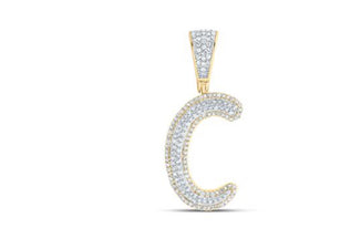 10K TWO-TONE GOLD ROUND DIAMOND C INITIAL LETTER CHARM PENDANT 5/8 CTTW