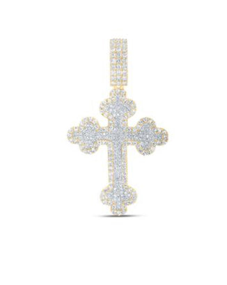 10K YELLOW GOLD BAGUETTE DIAMOND CROSS CHARM PENDANT 2-1/3 CTTW