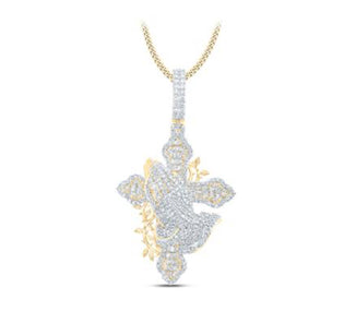 10K YELLOW GOLD ROUND DIAMOND PRAYER HANDS CROSS CHARM PENDANT 2 CTTW