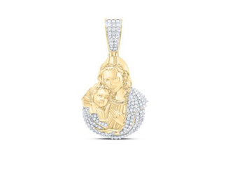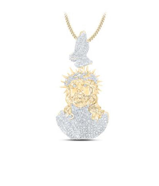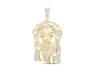 10K YELLOW GOLD ROUND DIAMOND JESUS FACE CHARM PENDANT 1-1/2 CTTW