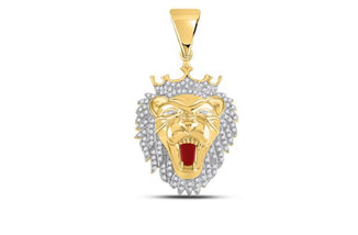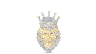 10K YELLOW GOLD ROUND DIAMOND KING LION CROWN CHARM PENDANT 1 CTTW
