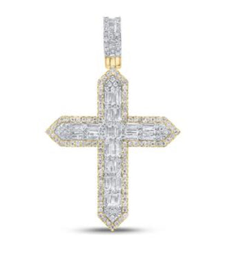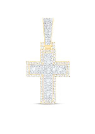 10K YELLOW GOLD BAGUETTE DIAMOND CROSS CHARM PENDANT 1-3/4 CTTW
