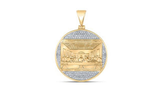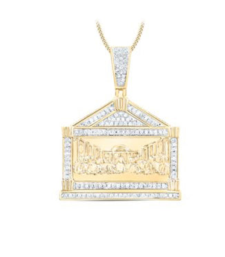 10K YELLOW GOLD ROUND DIAMOND LAST SUPPER CHARM PENDANT 3/8 CTTW