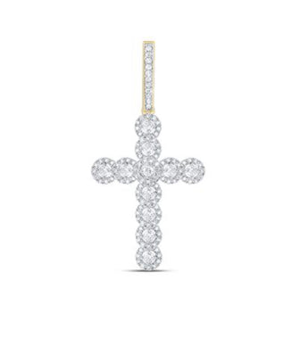 10K YELLOW GOLD ROUND DIAMOND CROSS CHARM PENDANT 3/4 CTTW