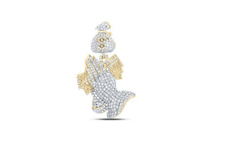 2CTW-DIA NK PRAYING HANDS HOLDING MONEY DOLLARS MENS CHARM