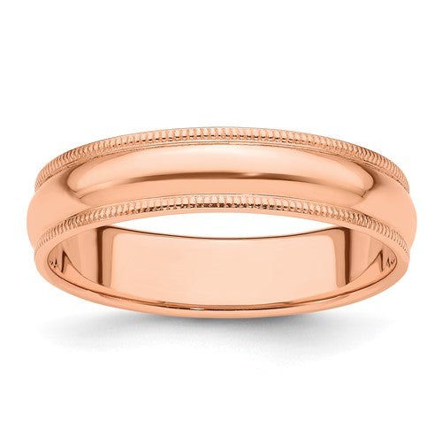 14k Rose Gold 5mm Milgrain Half-Round Wedding Band Size 4.5