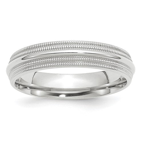 14k White Gold 5mm Double Milgrain Comfort Fit Wedding Band Size 5