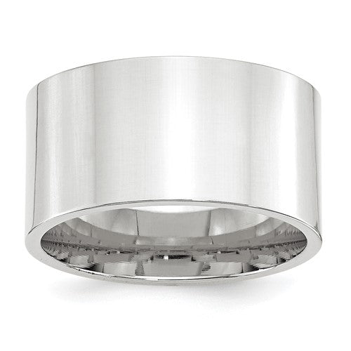 14k White Gold 12mm Standard Weight Flat Comfort Fit Wedding Band Size 8.5