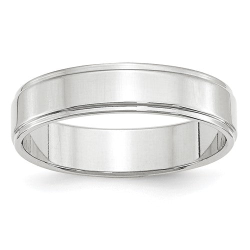 14k White Gold 5mm Flat with Step Edge Wedding Band Size 6.5
