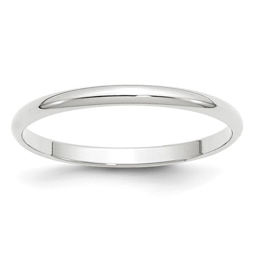 14k White Gold 2mm Lightweight Half Round Wedding Band Size 7.5