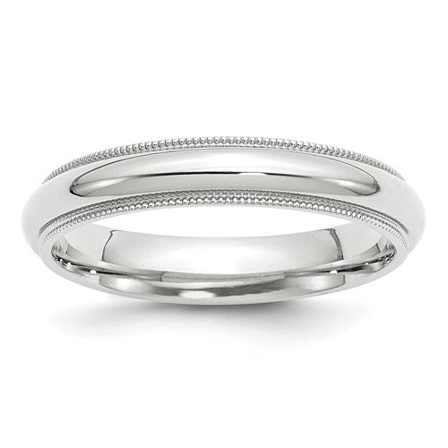 14k White Gold 4mm Milgrain Half Round Comfort Fit Wedding Band Size 5.5