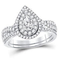 14K WHITE GOLD PEAR DIAMOND BRIDAL WEDDING RING SET 1 CTTW (CERTIFIED)