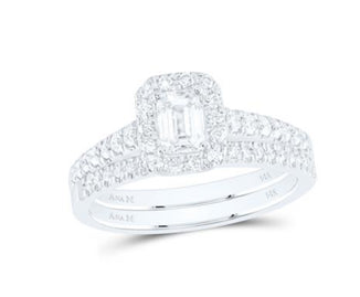 14K WHITE GOLD EMERALD DIAMOND BRIDAL WEDDING RING SET 1 CTW (CERTIFIED)