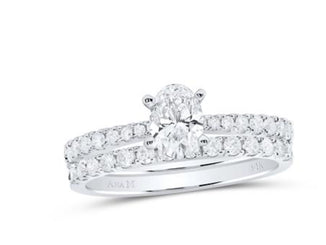 14K WHITE GOLD OVAL DIAMOND BRIDAL WEDDING RING SET 1 CTTW (CERTIFIED)