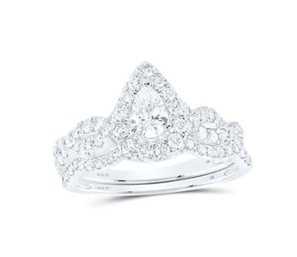 14K WHITE GOLD PEAR DIAMOND HALO BRIDAL WEDDING RING SET 1 CTTW (CERTIFIED)