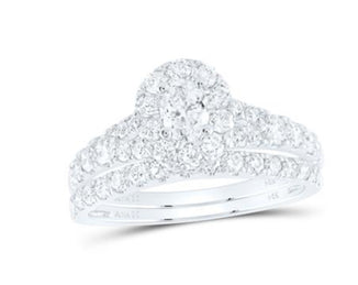 14K WHITE GOLD OVAL DIAMOND HALO BRIDAL WEDDING RING SET 1-1/2 CTTW (CERTIFIED)