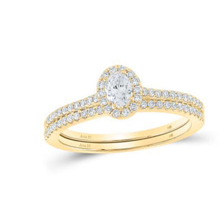 14K YELLOW GOLD OVAL DIAMOND HALO BRIDAL WEDDING RING SET 1/2 CTTW (CERTIFIED)