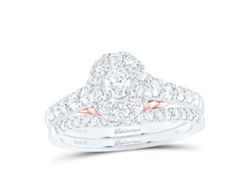 14K TWO-TONE GOLD OVAL DIAMOND HALO BRIDAL WEDDING RING SET 1 CTTW (CERTIFIED)