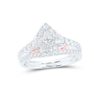 14K TWO-TONE GOLD PEAR DIAMOND BRIDAL WEDDING RING SET 1 CTTW (CERTIFIED)