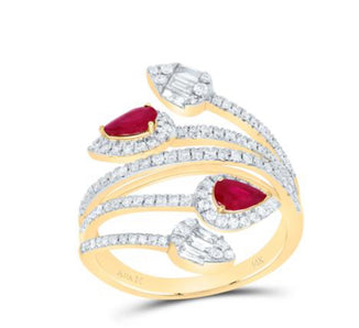 1/2CTW-DIA ANA M 3/4CT RD-RU NAT GEM RING