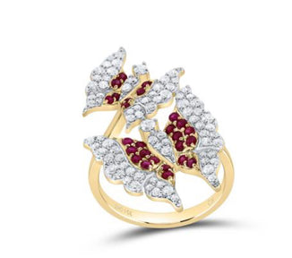 3/4CTW-DIA CN 1/2CT RD-RU NAT GEM BUTTERFLY RING