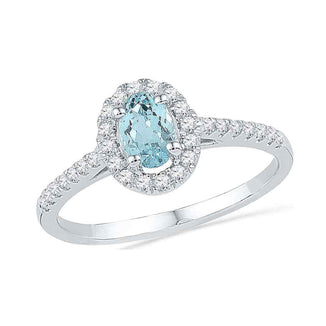 10kt White Gold Womens Oval Aquamarine Diamond-accent Solitaire Ring 1/5 Cttw