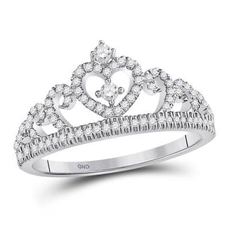 10K WHITE GOLD ROUND DIAMOND HEART CROWN FASHION RING 1/4 CTTW
