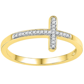 10kt Yellow Gold Womens Round Diamond Cross Religious Band Ring 1/20 Cttw
