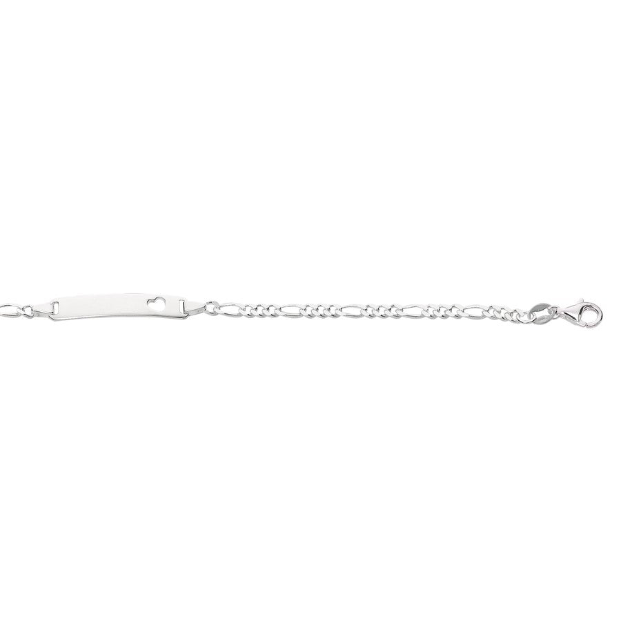 Silver ID and Heart Cut Out on Figaro Chain Bracelet