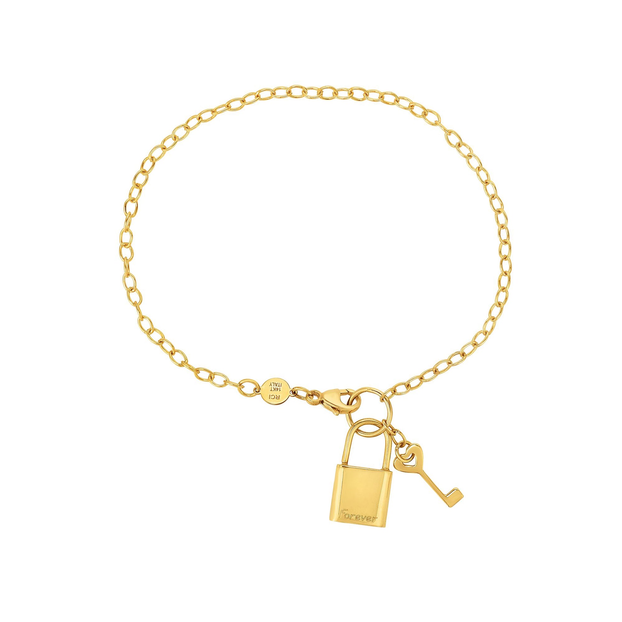 14K Yellow Gold 7.5" Lock & Key (Forever) Bracelet
