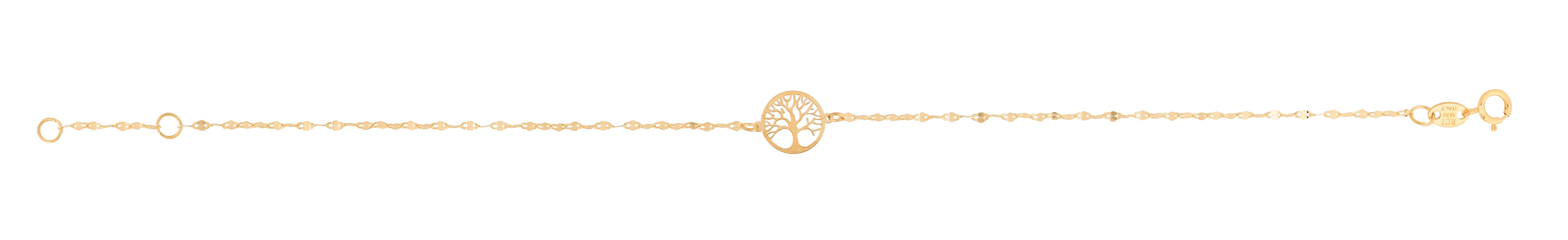 14K Yellow Gold 7" Tree of Life on Mirror Chain Bracelet