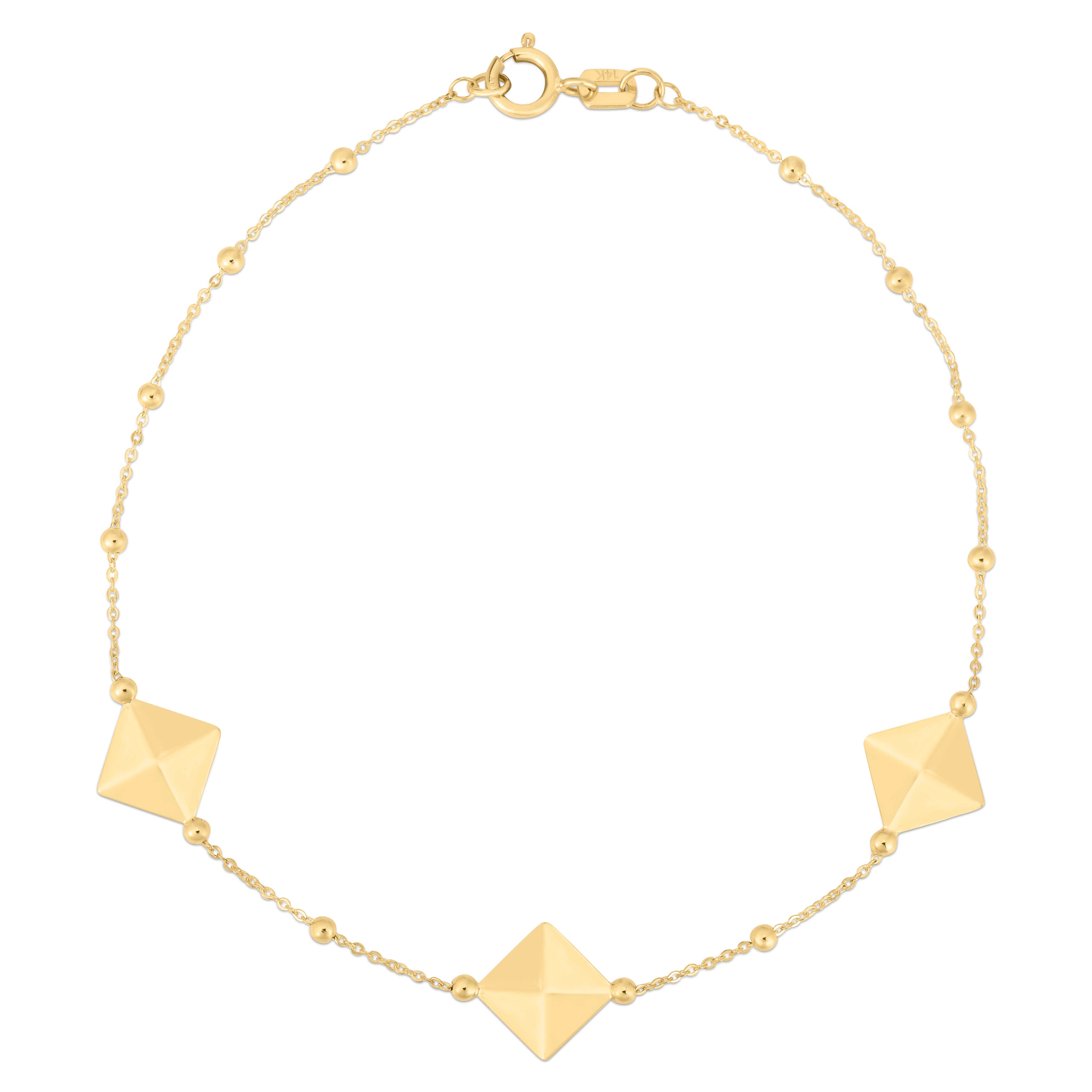 14K Yellow Gold 7.5" Pyramid Station Bracelet with Lobster Clasp.