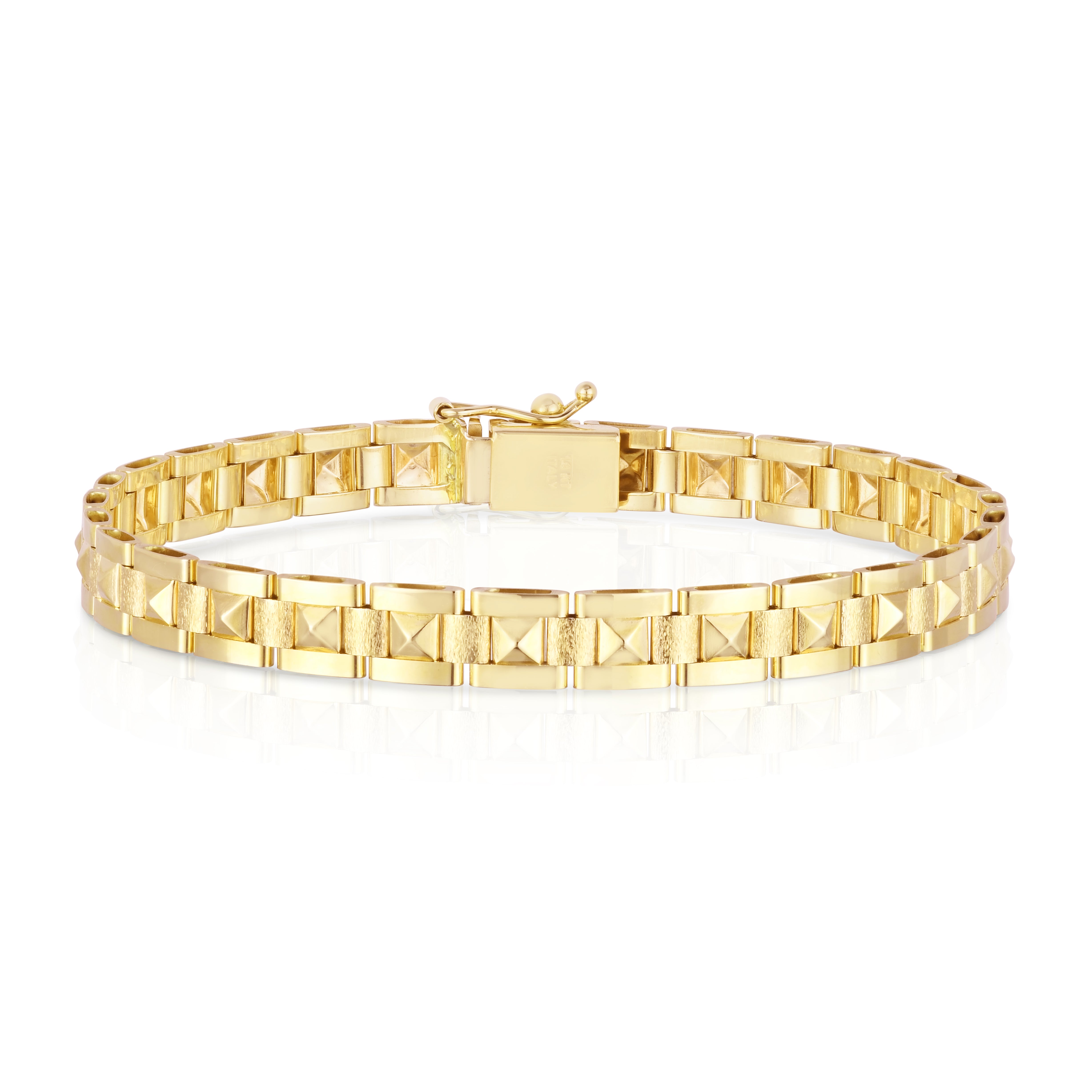 14K Yellow Gold 7" Spike Pyramid 6mm Bracelet with Box Clasp