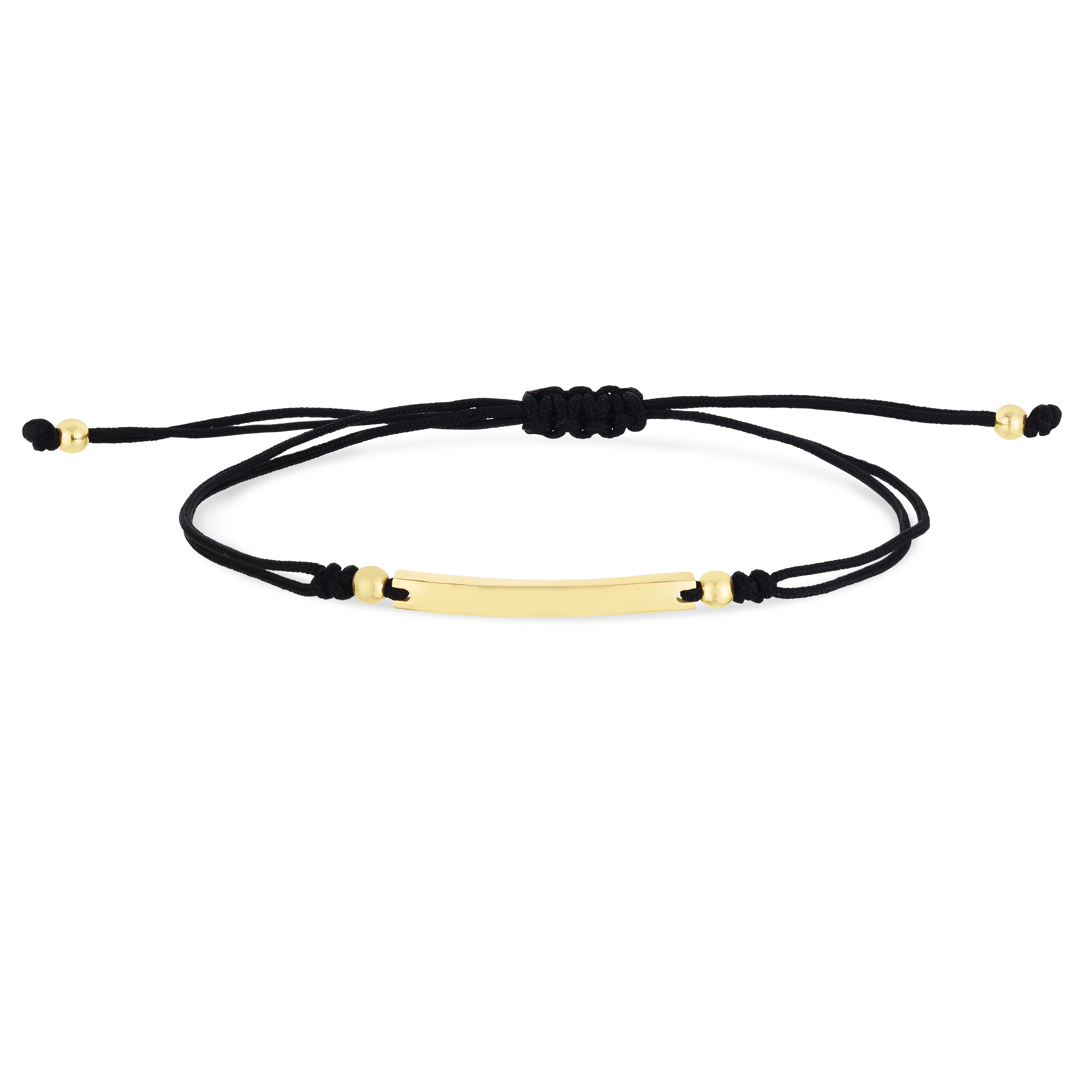 14K Yellow Gold Bar Black Cord 9.25" Bracelet with Drawstring Closure