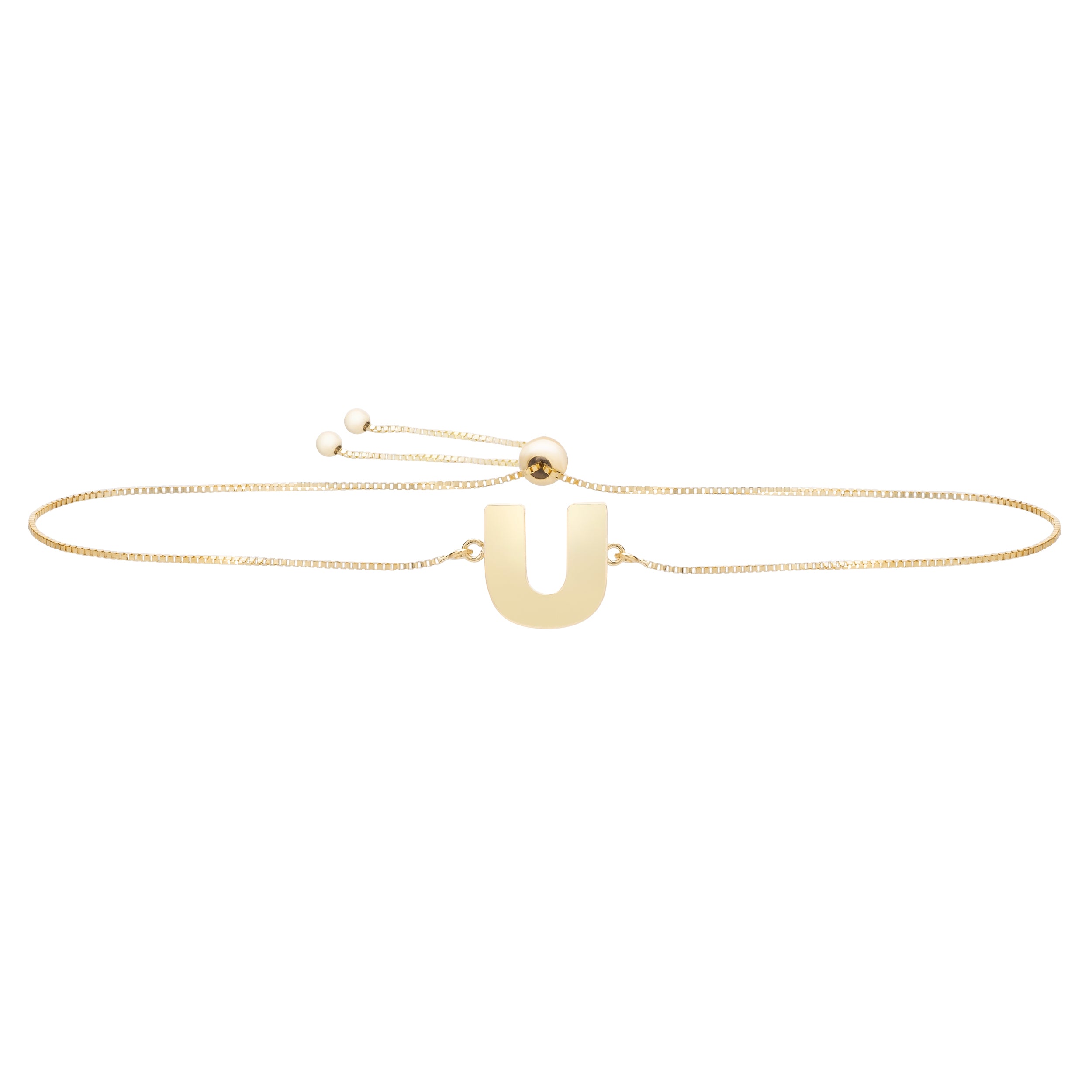 14K Yellow Gold Yours Truly Initial U Adjustable Bolo 9.25" Bracelet